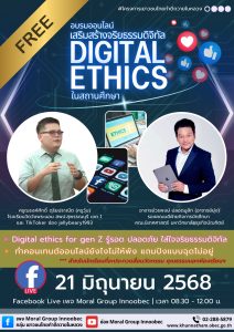 ขอเชิญชวนนักเรียน ร่วมอบรมออนไลน์ “จริยธรรมดิจิทัลในสถานศึกษา” ผ่าน Facebook Live เพจ Moral Group Innoobec