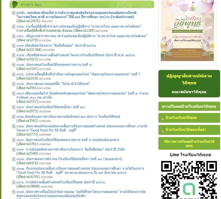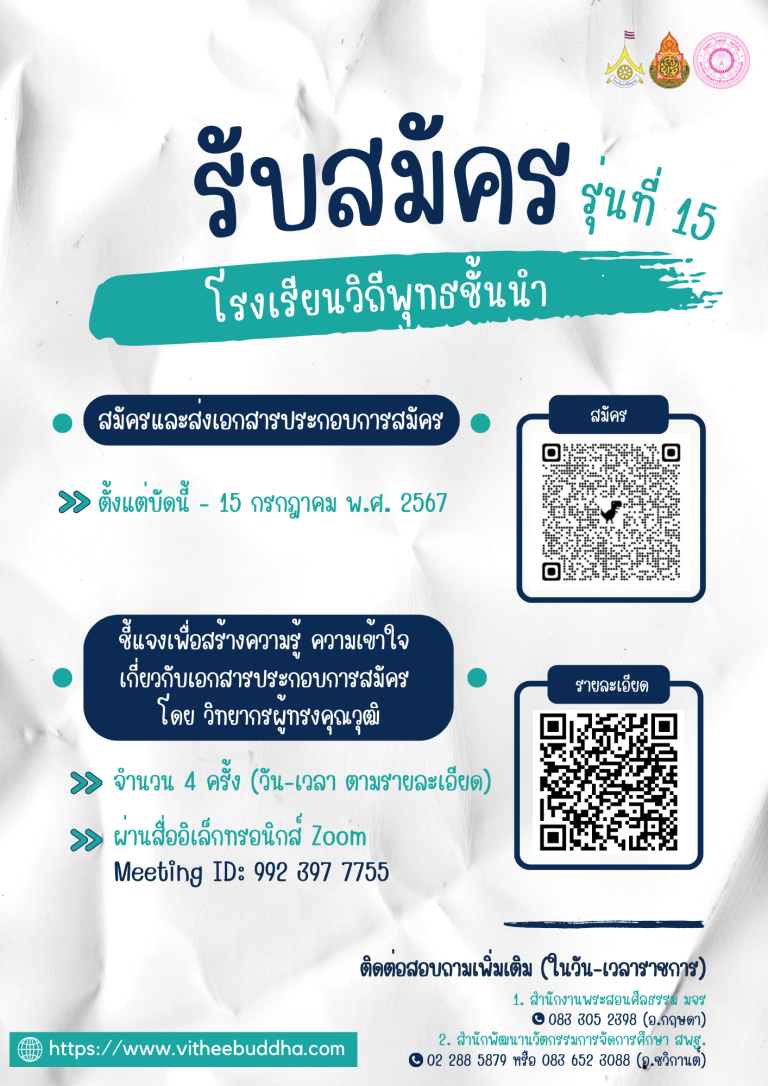 รับสมัครโรงเรียนวิถีพุทธชั้นนำ รุ่นที่ ๑๕